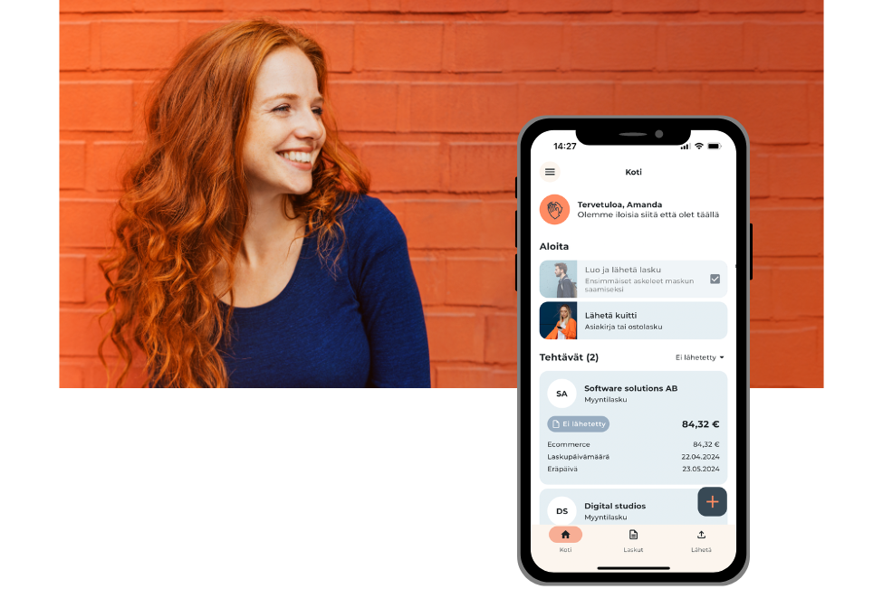 Helppokäyttöisellä sovelluksella on mukava luoda ja lähettää myyntilaskuja. Sovelluksella voi myös hyväksyä ostolaskuja, kuvata kuitteja ja ladata muita aineistoja, jotka siirtyvät sinulle suoraan kirjanpito-ohjelmaan käsiteltäväksi. Uudessa sovelluksessa on parannettu kuittiskanneri korkealaatuisia liitteitä varten sekä mahdollisuus tuoda digitaalisia kuitteja muista sovelluksista.